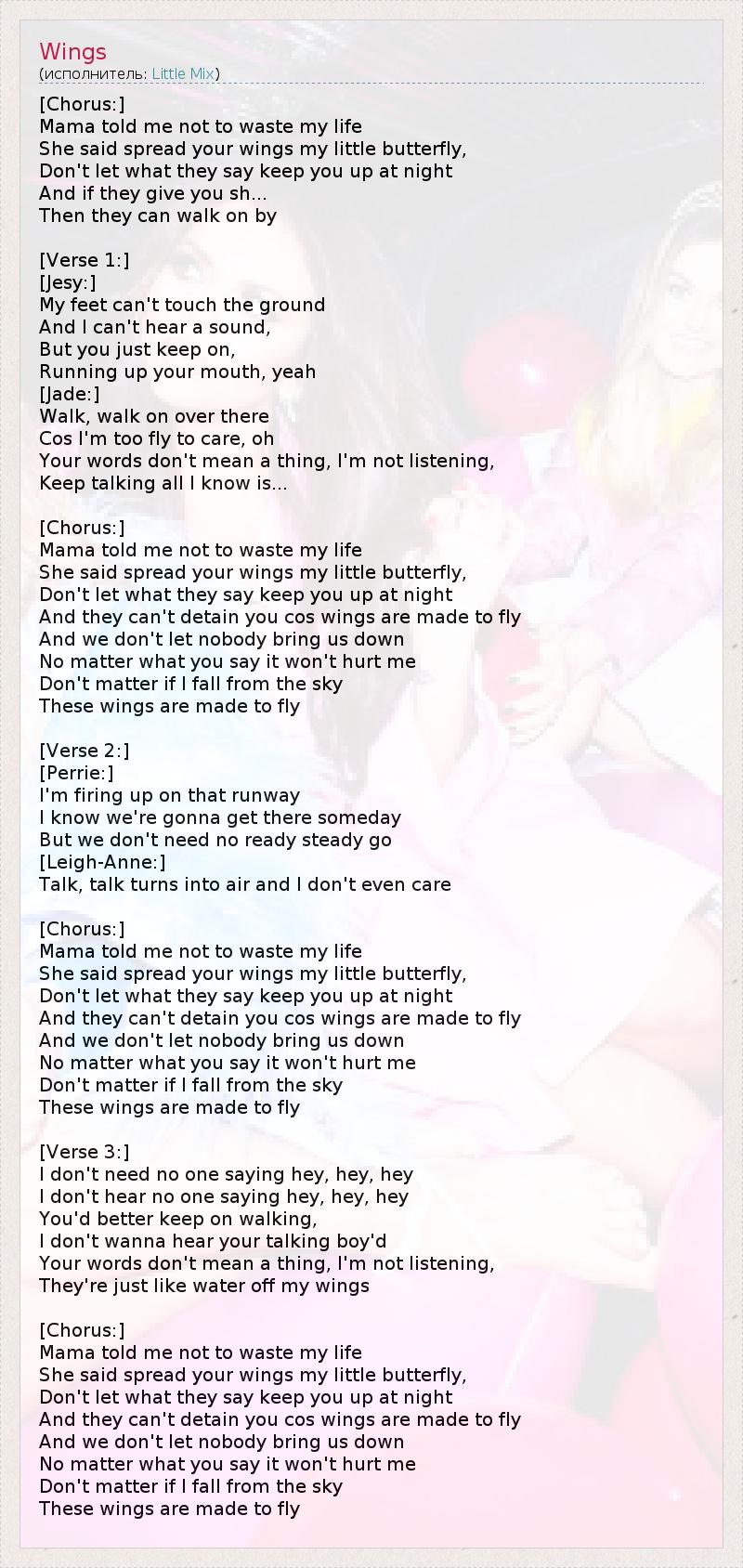 А как ты думаешь, о чем песня "Wings" ?