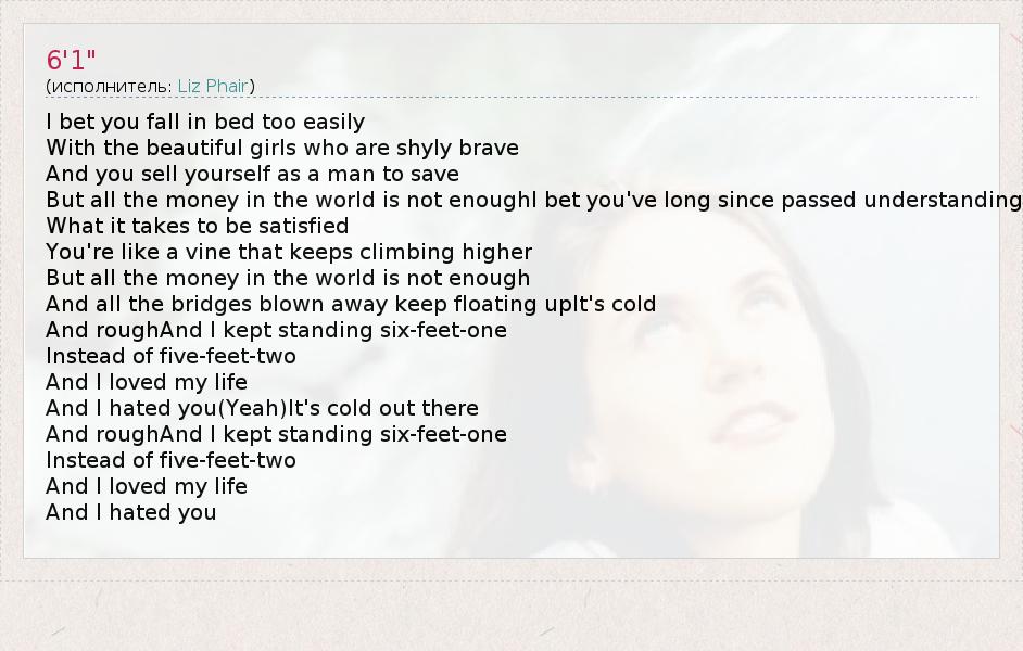 Это интересно:Лиз Фэйр (урожденная Элизабет Кларк Фэйр) появилась на свет 17 Апреля 1967 года в Нью-Хейвен, штат Коннектикут, СШААмериканская певица и гитаристка.Лиз Фэйр начала свою карьеру в 1990-х годах, путем самостоятельной записи LO-FI аудио кассет, до подписания с Matador Records.После чего она становится одним из ведущих андеграундных музыкантов инди-рока 1990-х годов. В 2003 году Лиз Фэйр записывает... продолжение