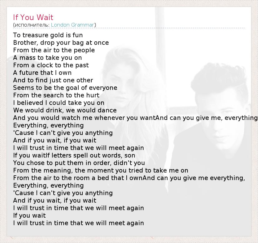 А как ты думаешь, о чем песня "If You Wait" ?