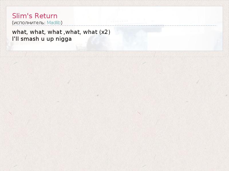 А как ты думаешь, о чем песня "Slim's Return" ?