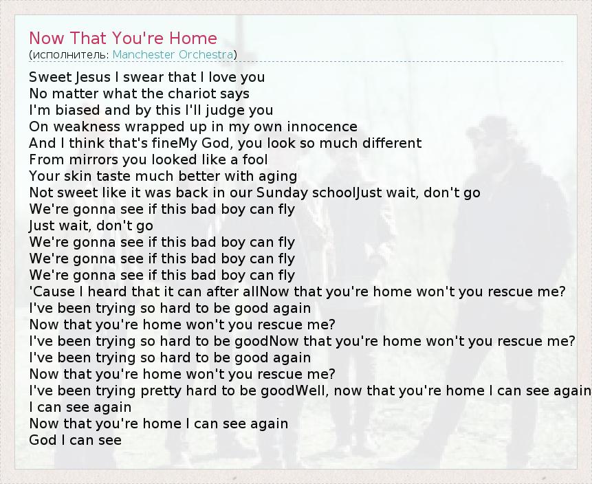 А как ты думаешь, о чем песня "Now That You're Home" ?