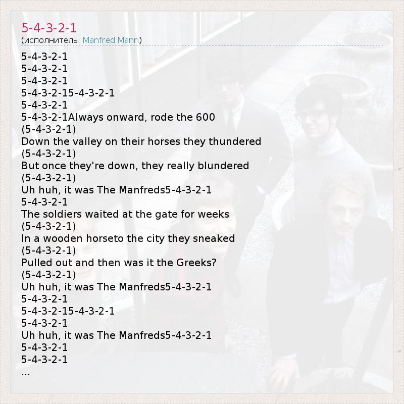 А как ты думаешь, о чем песня "5-4-3-2-1" ?