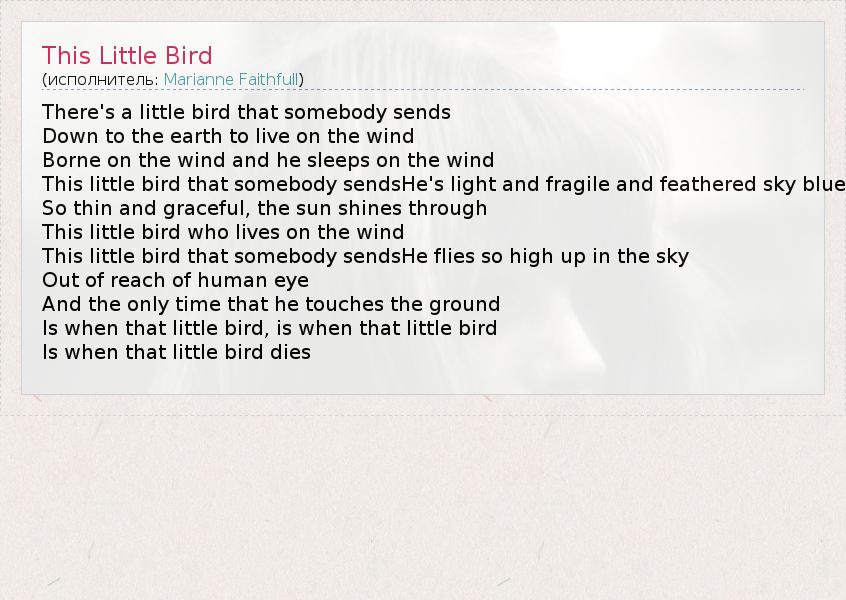 А как ты думаешь, о чем песня "This Little Bird" ?
