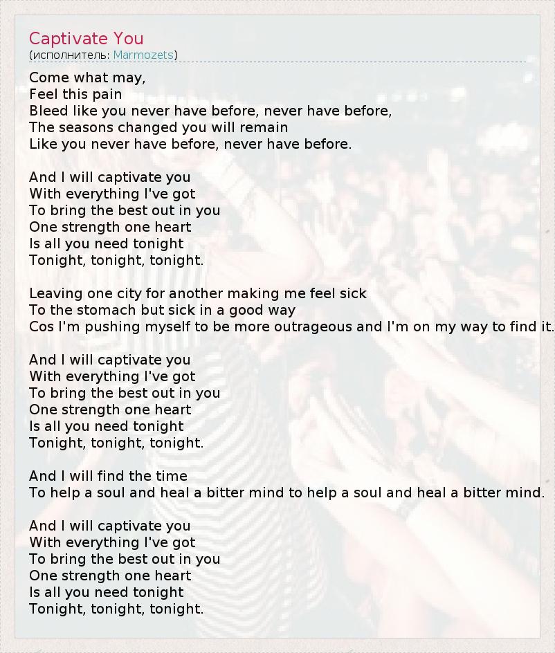 А как ты думаешь, о чем песня "Captivate You" ?