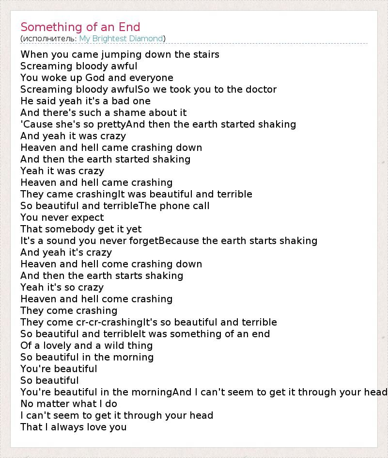 You're beautiful in the morningAnd I can't seem to get it through your head