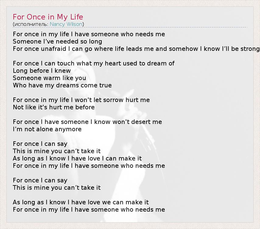 А как ты думаешь, о чем песня "For Once in My Life" ?