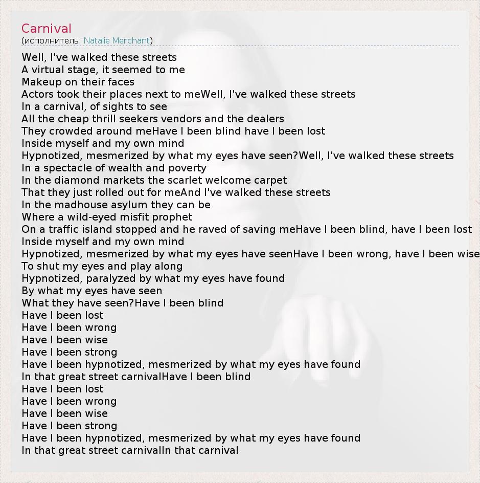 А как ты думаешь, о чем песня "Carnival" ?