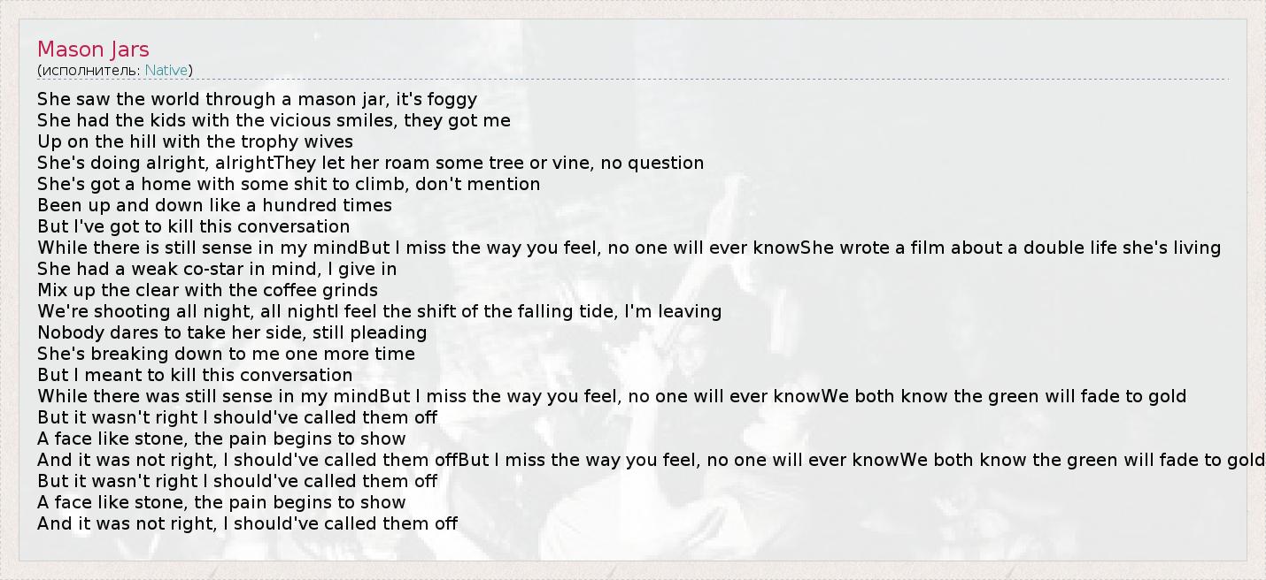 А как ты думаешь, о чем песня "Mason Jars" ?