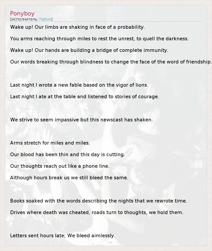 А как ты думаешь, о чем песня "Ponyboy" ?