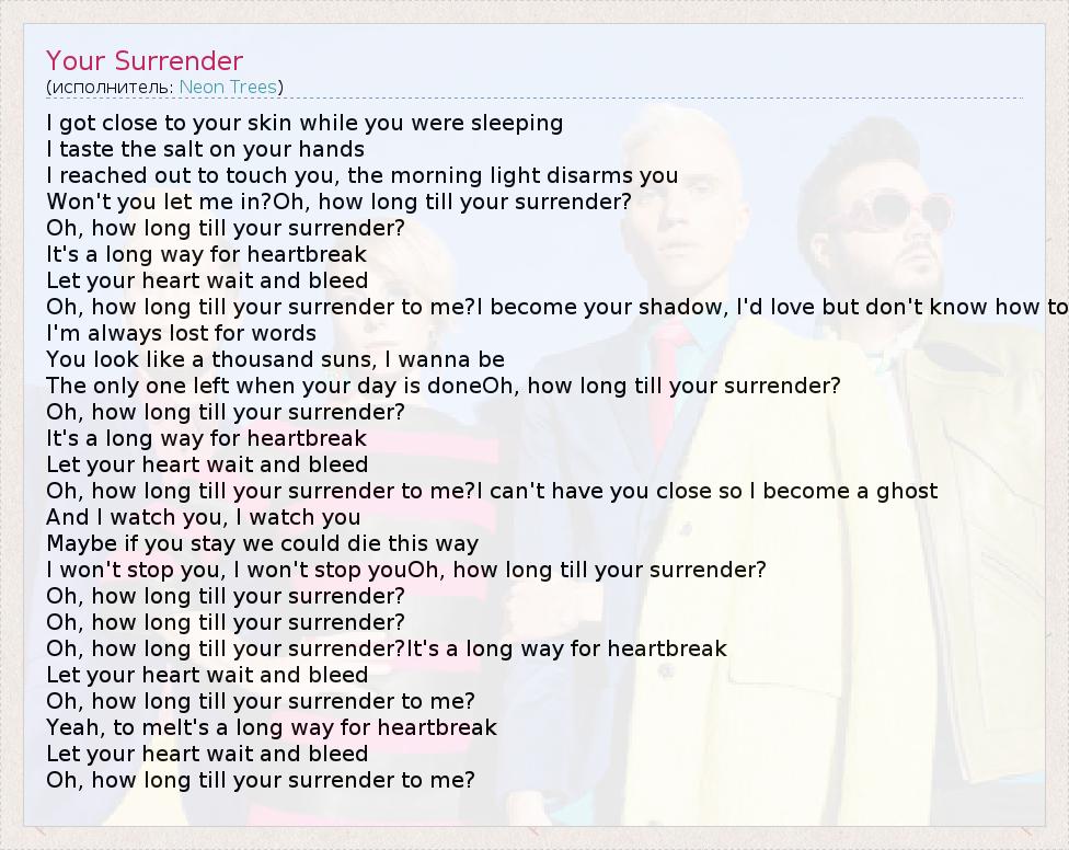 А как ты думаешь, о чем песня "Your Surrender" ?