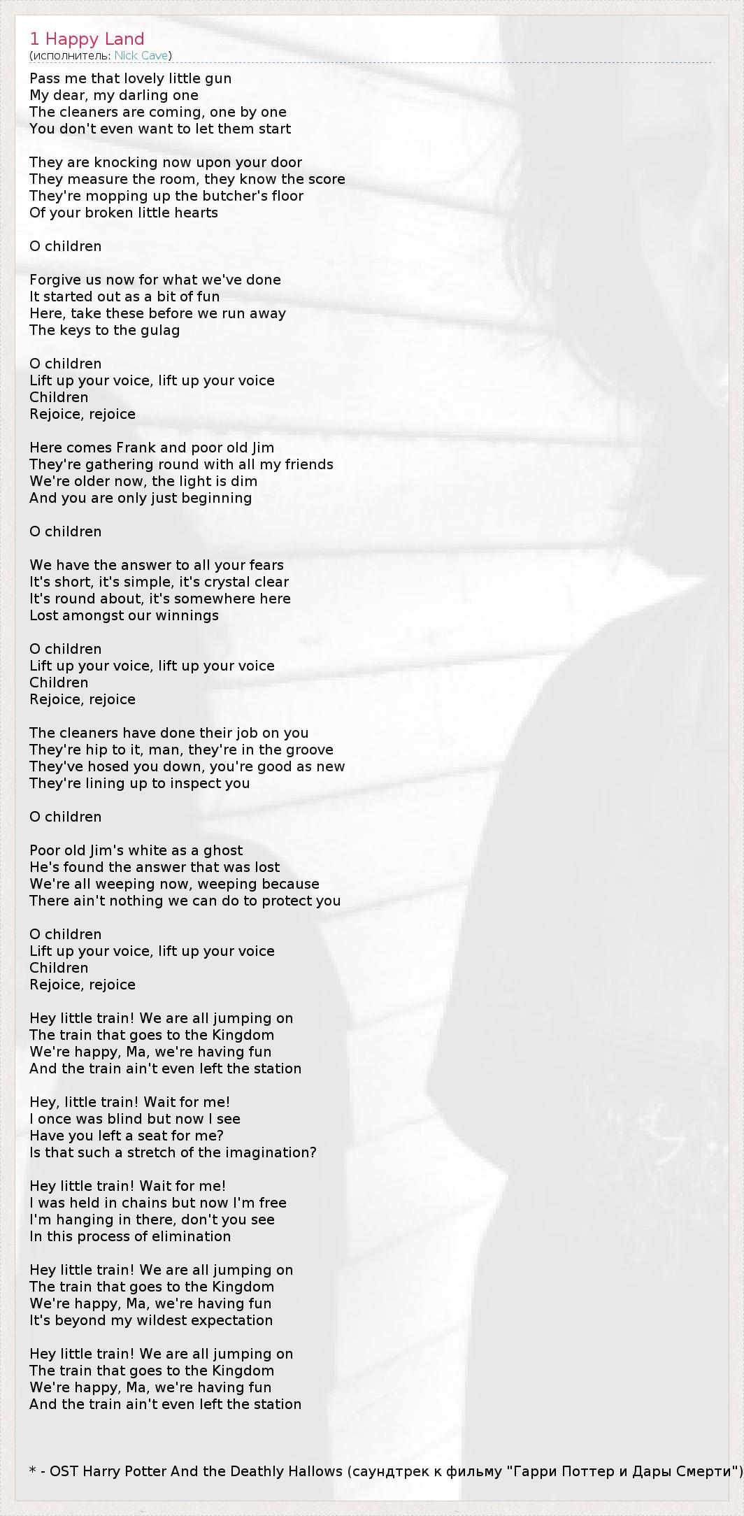 А как ты думаешь, о чем песня "1 Happy Land" ?