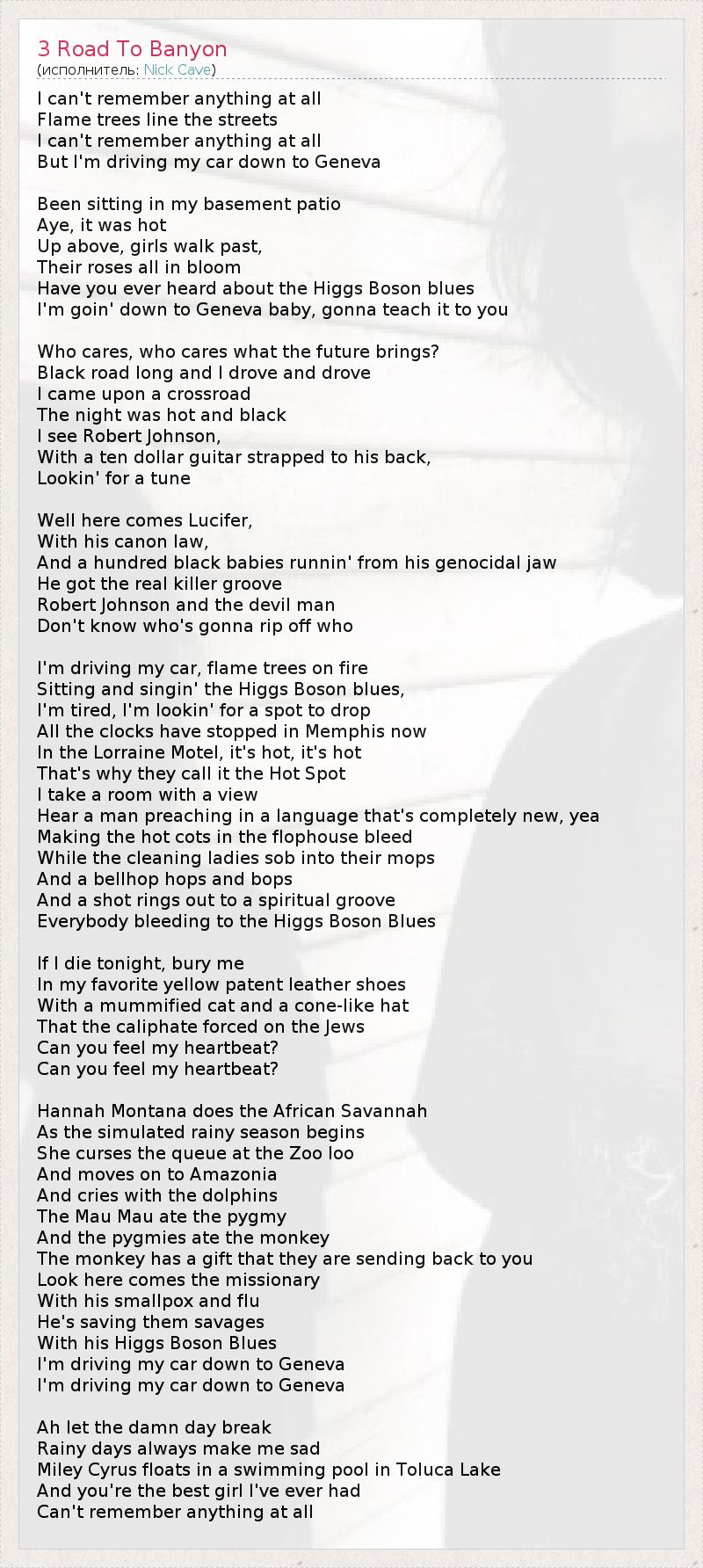 А как ты думаешь, о чем песня "3 Road To Banyon" ?