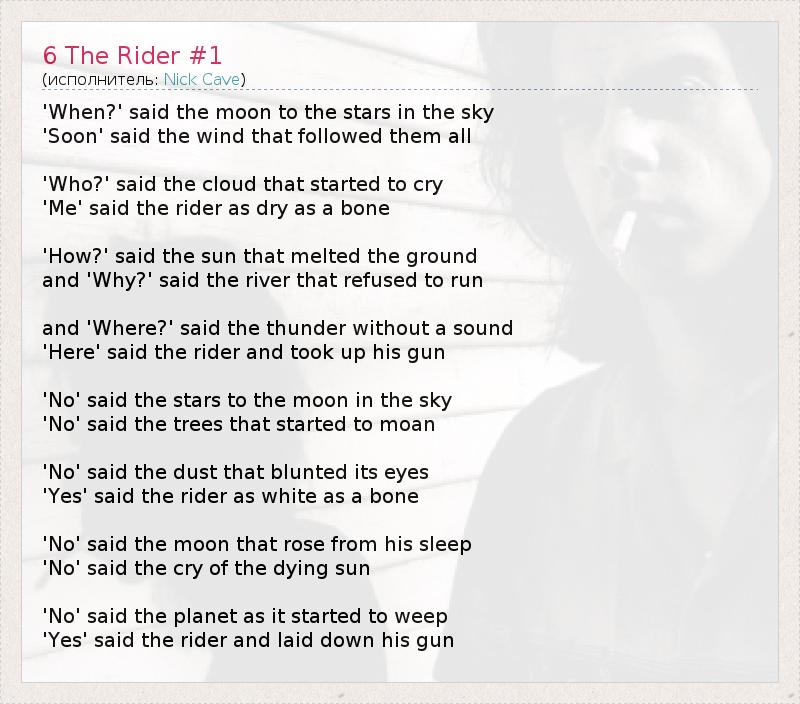 А как ты думаешь, о чем песня "6 The Rider #1" ?