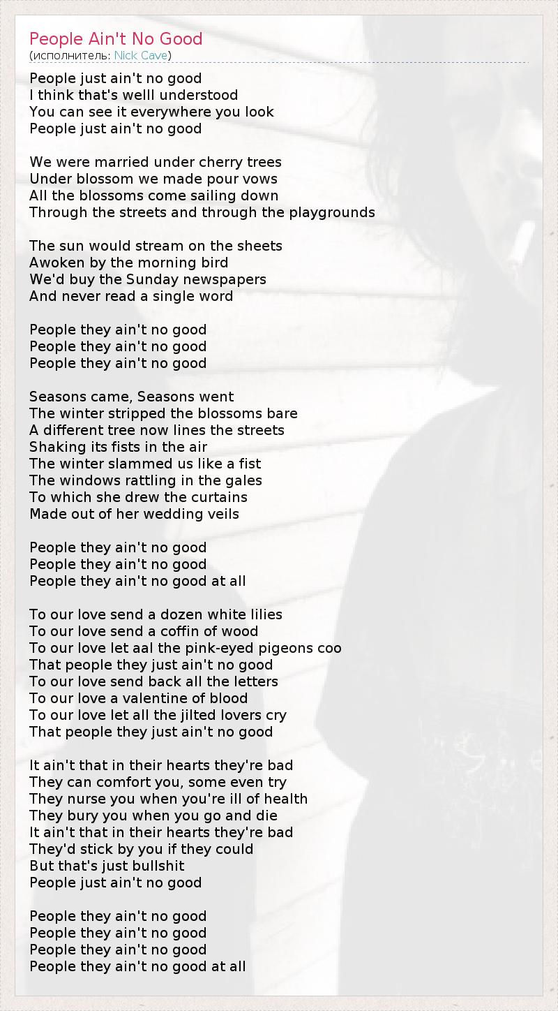 А как ты думаешь, о чем песня "People Ain't No Good" ?