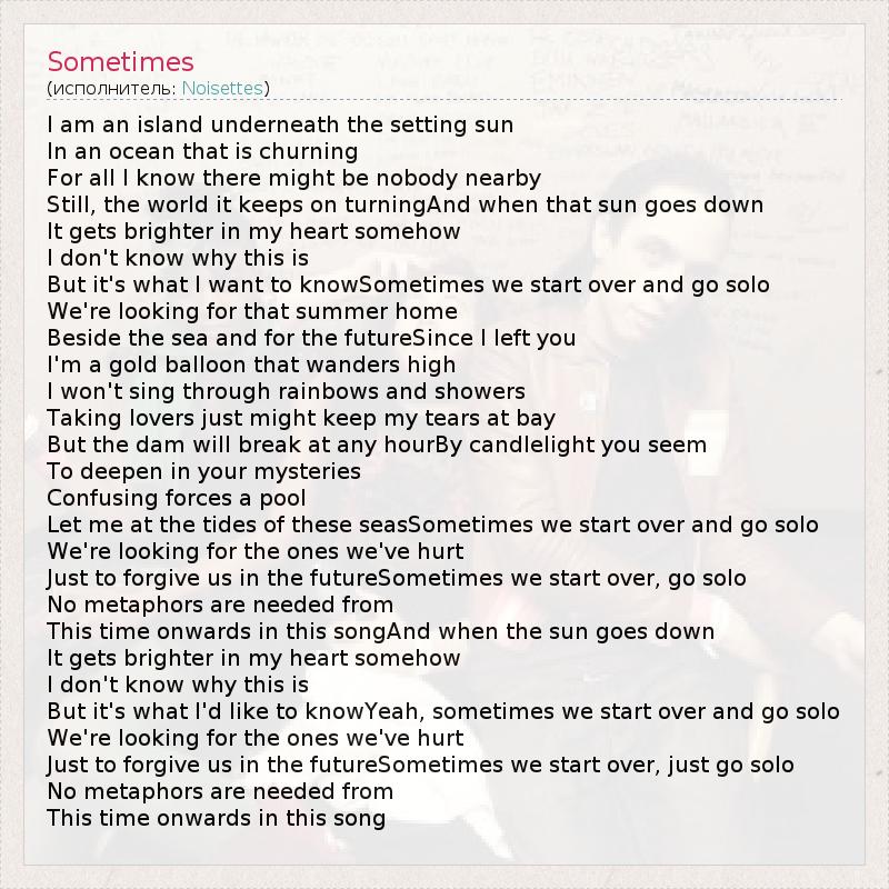 But it's what I'd like to knowYeah, sometimes we start over and go solo
