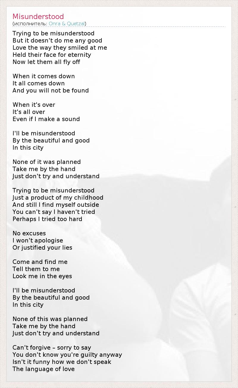 А как ты думаешь, о чем песня "Misunderstood" ?