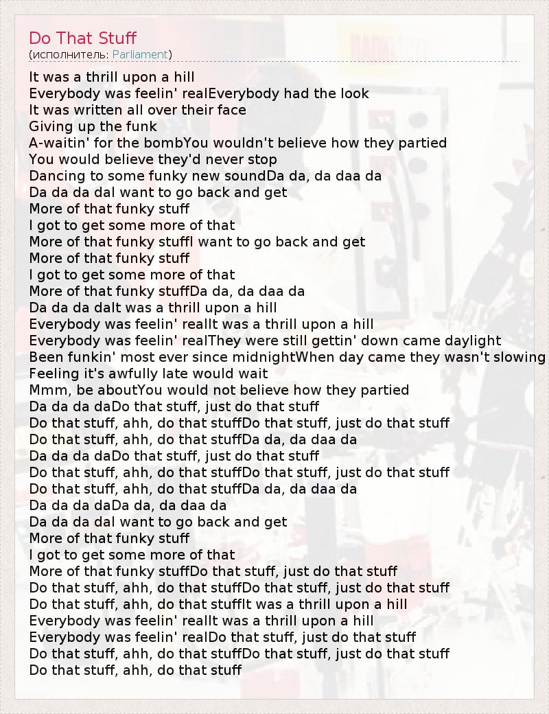 А как ты думаешь, о чем песня "Do That Stuff" ?