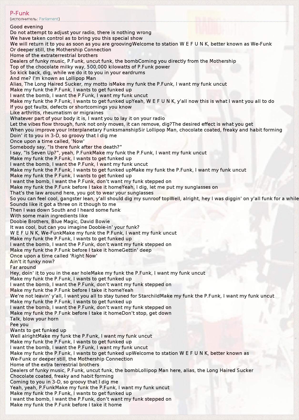 Well alrightMake my funk the P.Funk, I want my funk uncut