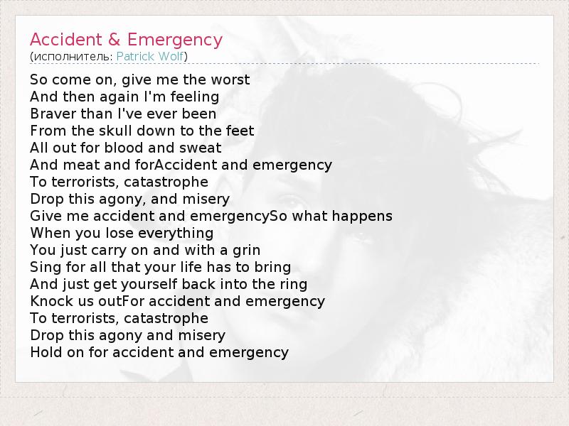 А как ты думаешь, о чем песня "Accident & Emergency" ?