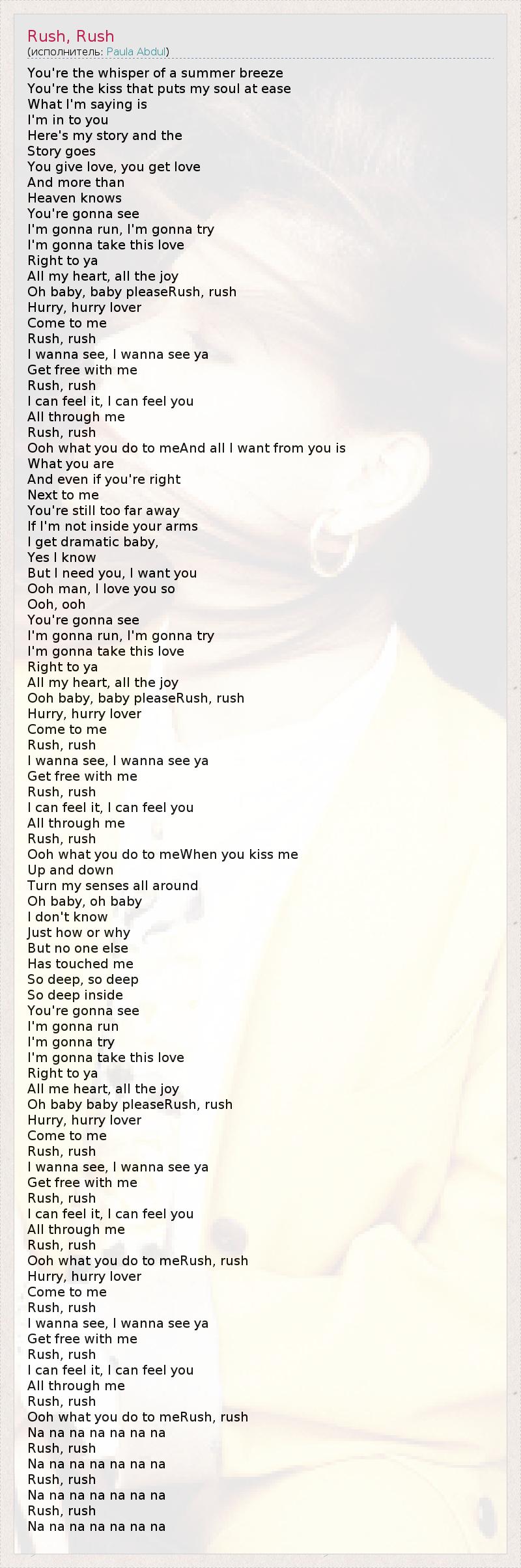 А как ты думаешь, о чем песня "Rush, Rush" ?