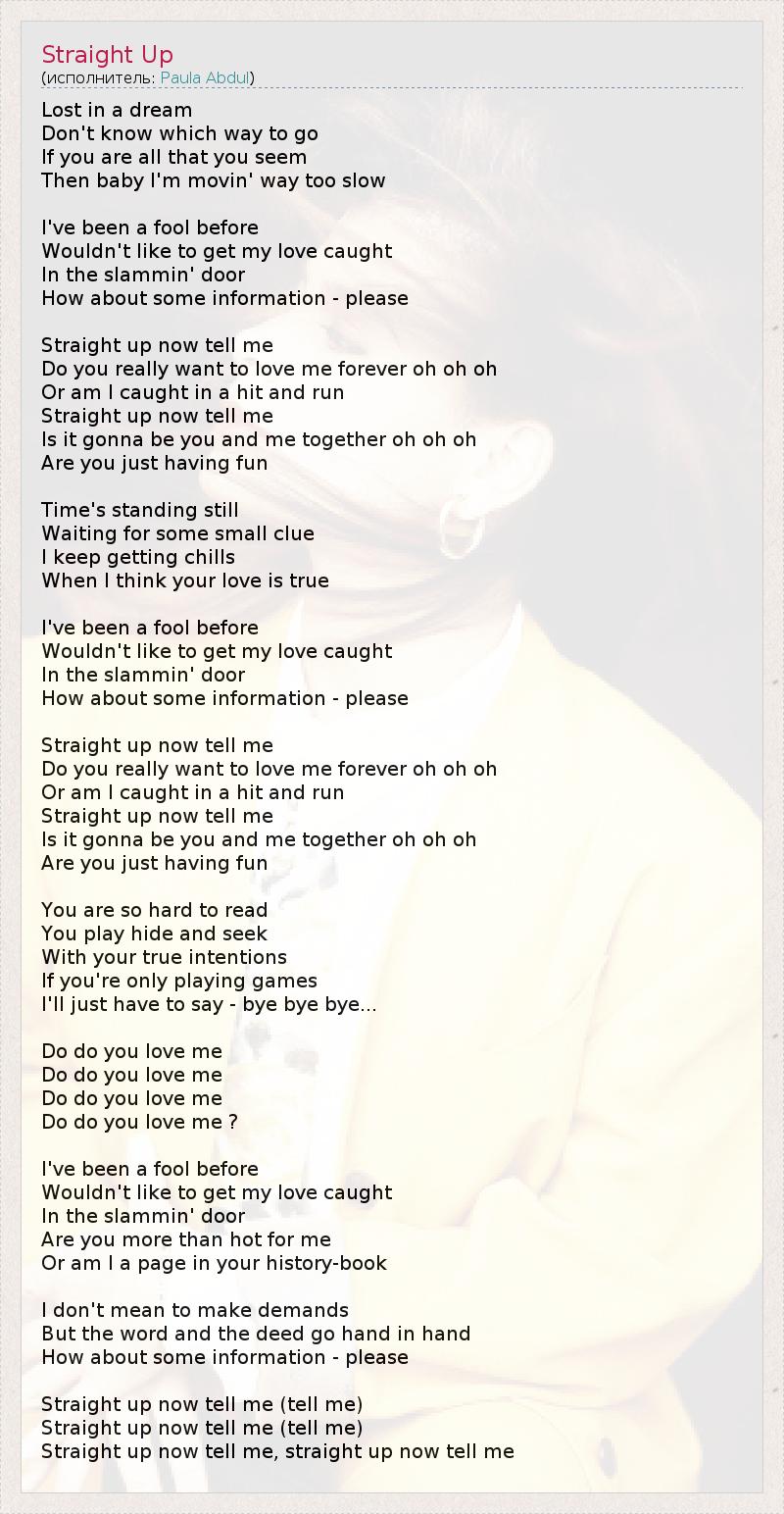 Это интересно:Певица Пола Абдул родилась в 1963 году в США. Пола Абдул (по происхождению - наполовину бразилианка, наполовину - сирийка), прежде всего, - замечательный хореограф, в 1986 году получила награду MTV как лучший хореограф года за танцы, поставленные для клипа Джанет Джексон "Nasty". Ставила танцы для видео клипов и сценических шоу Лютера Вандросса, Duran Duran, ZZ Top и группы The Jacksons: семейство Джексонов... продолжение