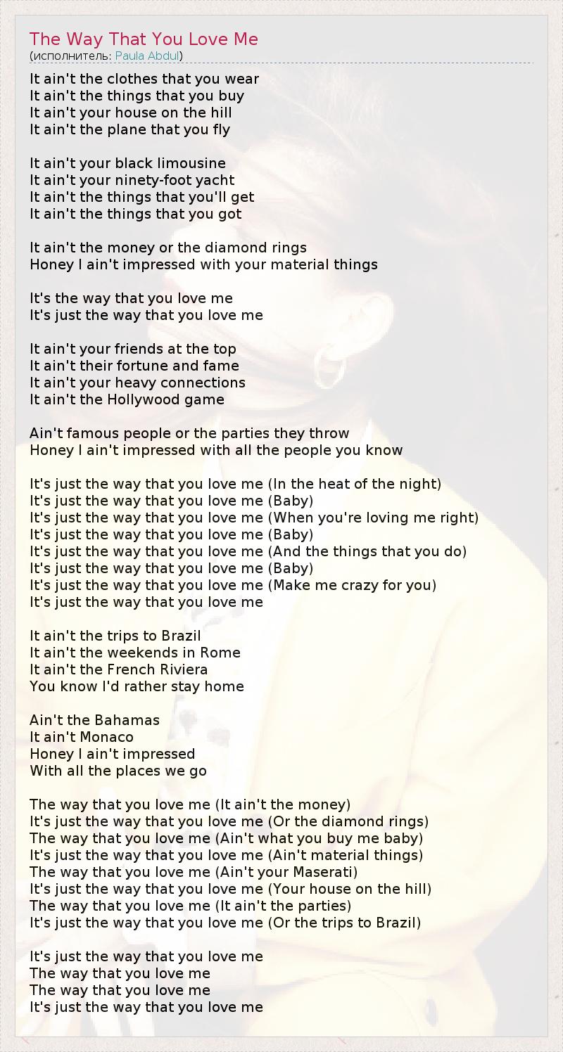 ГлавнаяИсполнителиPaula AbdulThe Way That You Love Me