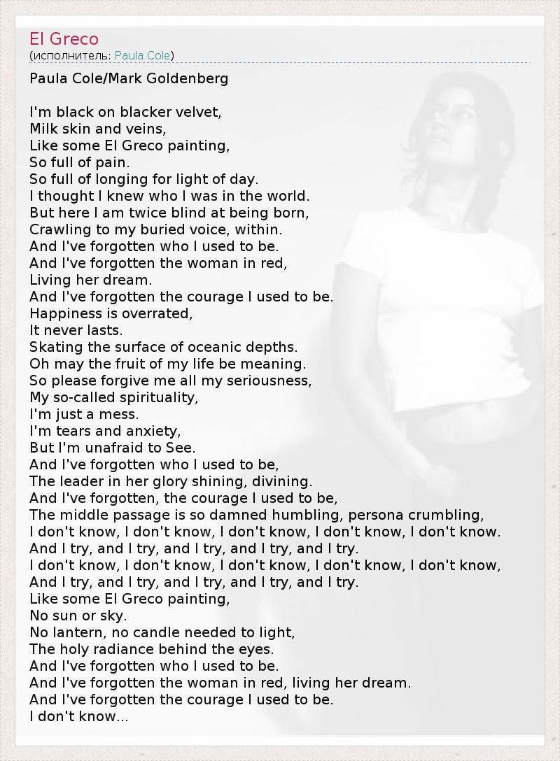 Это интересно:Паула Коул – удивительное явление в музыке поздних 90-х. Пола выросла в семье художницы и музыканта-любителя. Она родилась 5 апреля 1968 года в городе Рокпорт штата Массачусетс (США). В ее доме ежемгновенно звучала музыка, хотя около отродясь не играло радио или магнитофон. Музыкальным фоном были импровизации на разных инструментах в самых разных ситуациях, будь то посиделки на кухне или... продолжение