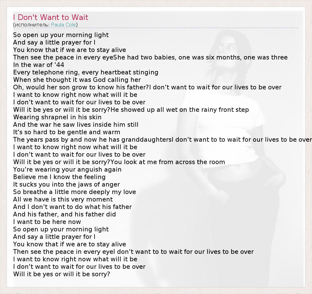 А как ты думаешь, о чем песня "I Don't Want to Wait" ?