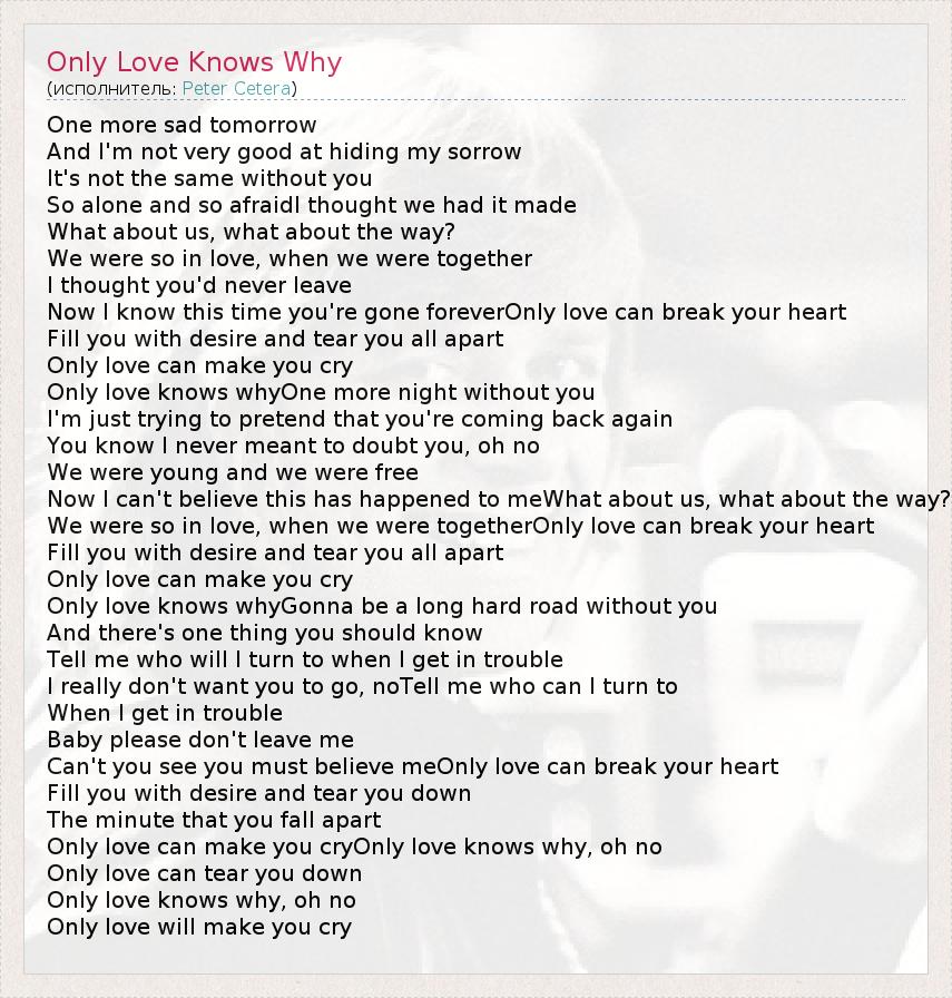 А как ты думаешь, о чем песня "Only Love Knows Why" ?
