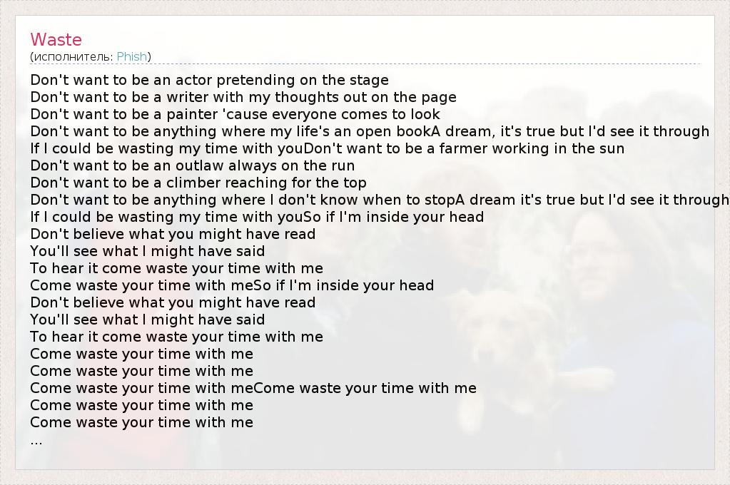 А как ты думаешь, о чем песня "Waste" ?