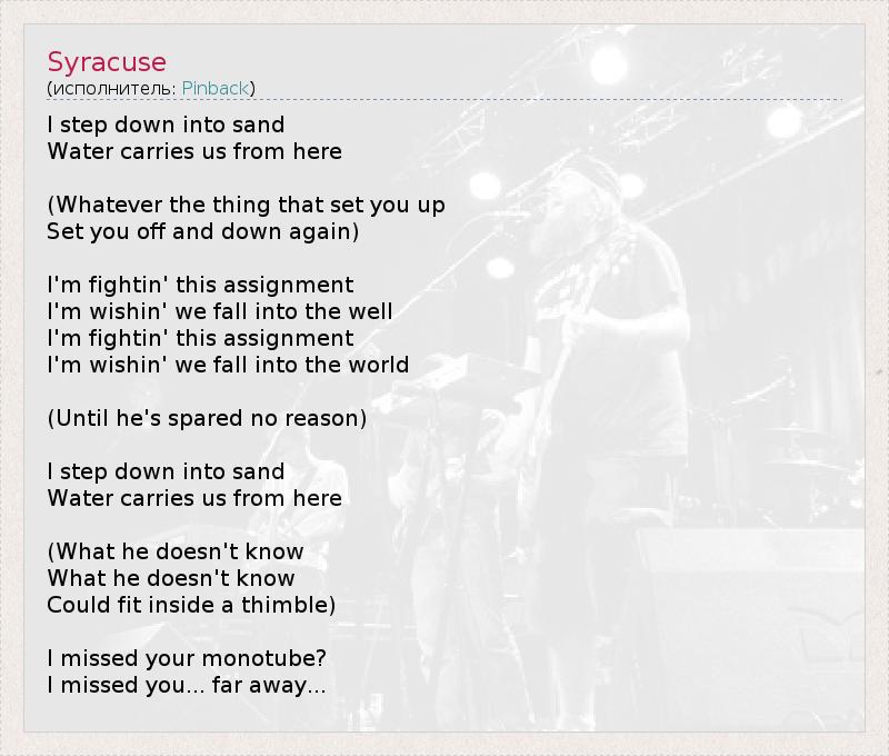 Это интересно:Pinback - indie rock группа из San Diego, CA, в данный момент подписаная на лейбле Touch and Go Records. Группа была создана в 1998 двумя певцами и мульти-инструменталистами: Армистэдом Бурвеллом Смитом Четвертым (или просто - Зак Смит) и Робом Кроу.За 10 лет существования группа записала четыре полноформатных альбома, последний из которых, The Autumn Of Seraphs, вышел... продолжение