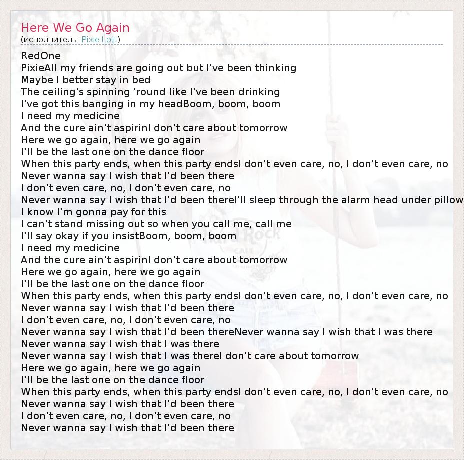 А как ты думаешь, о чем песня "Here We Go Again" ?