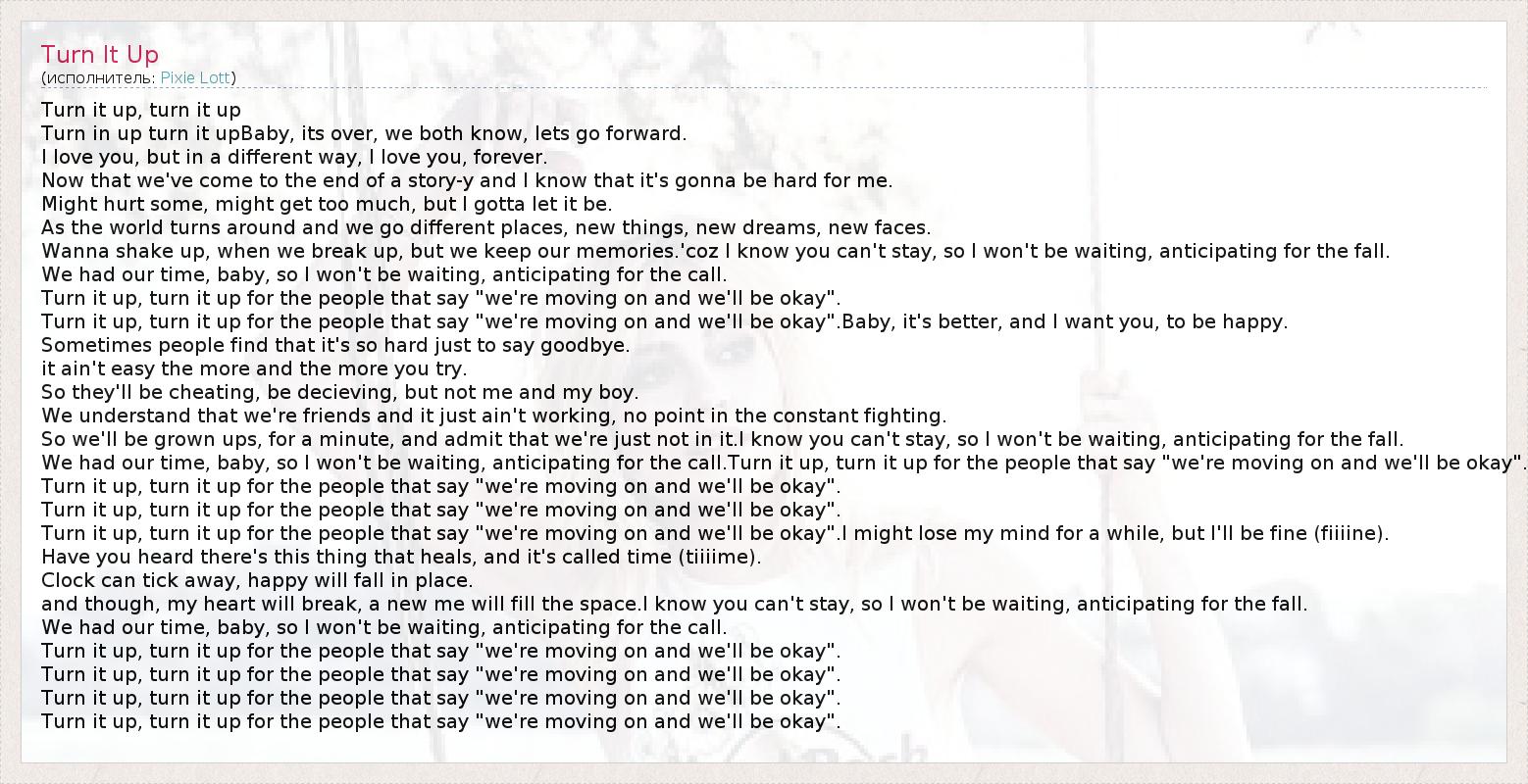 А как ты думаешь, о чем песня "Turn It Up" ?