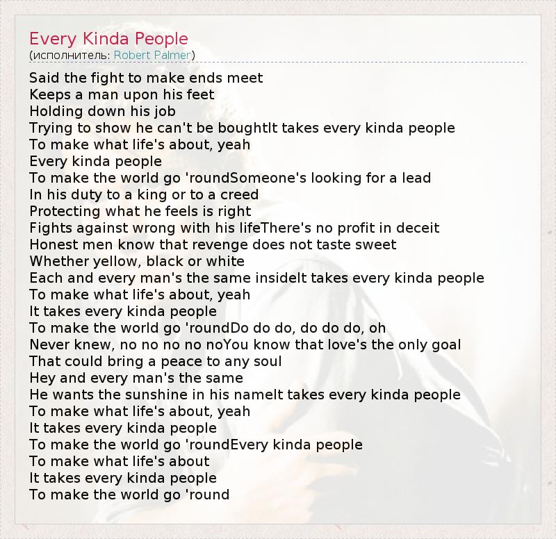 А как ты думаешь, о чем песня "Every Kinda People" ?