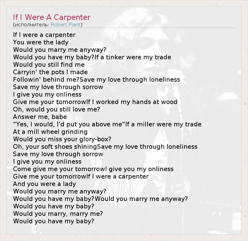 А как ты думаешь, о чем песня "If I Were A Carpenter" ?