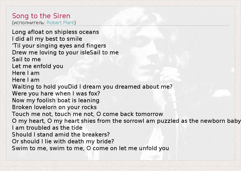 А как ты думаешь, о чем песня "Song to the Siren" ?