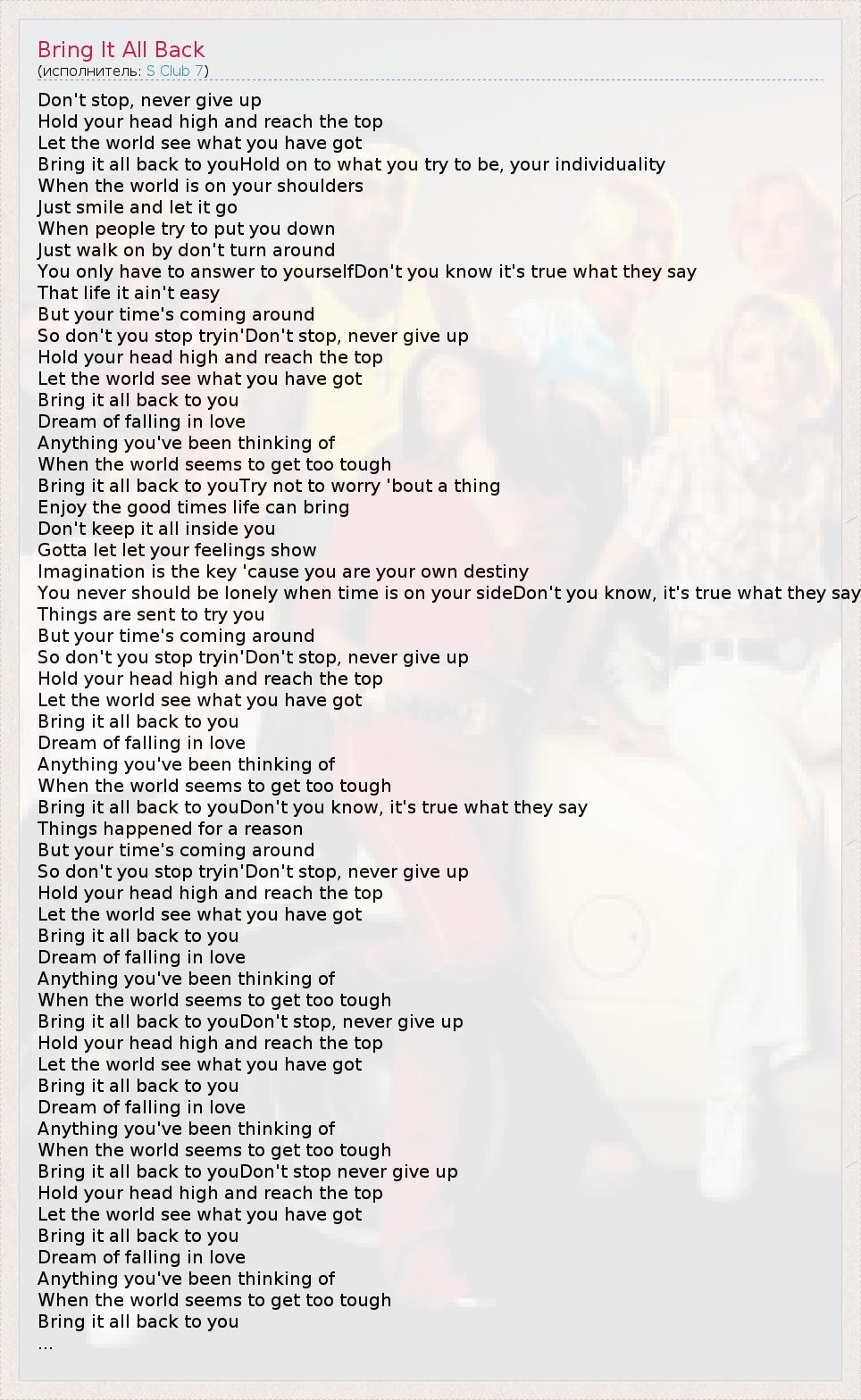 А как ты думаешь, о чем песня "Bring It All Back" ?