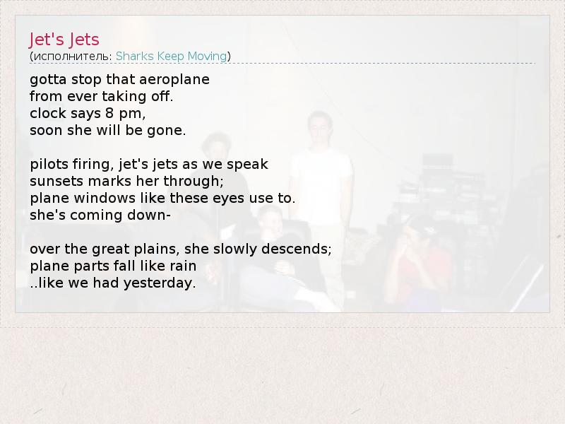 А как ты думаешь, о чем песня "Jet's Jets" ?