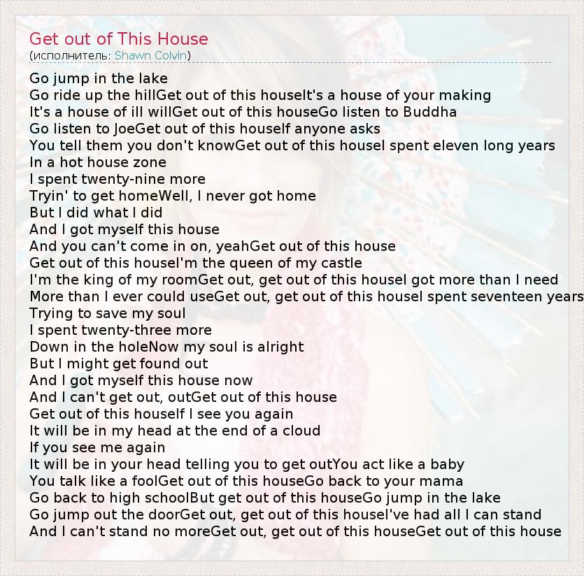 А как ты думаешь, о чем песня "Get out of This House" ?