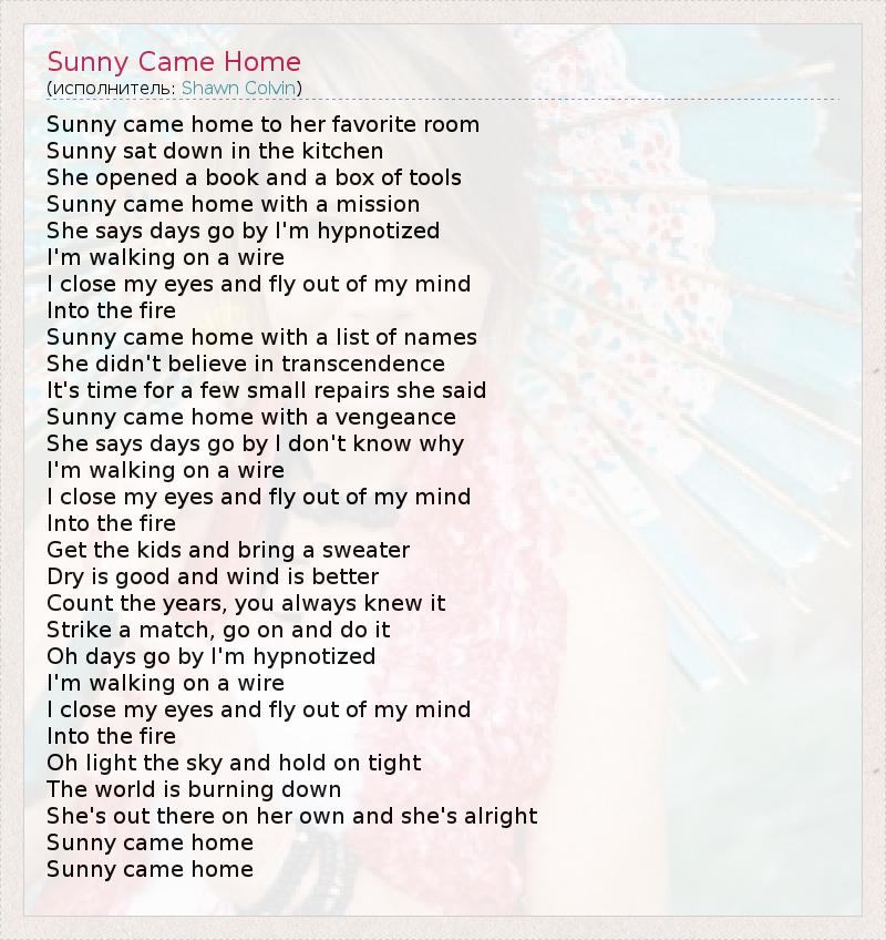 А как ты думаешь, о чем песня "Sunny Came Home" ?