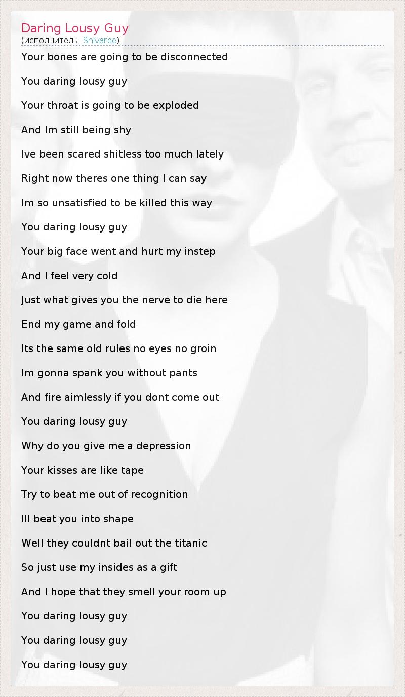 А как ты думаешь, о чем песня "Daring Lousy Guy" ?