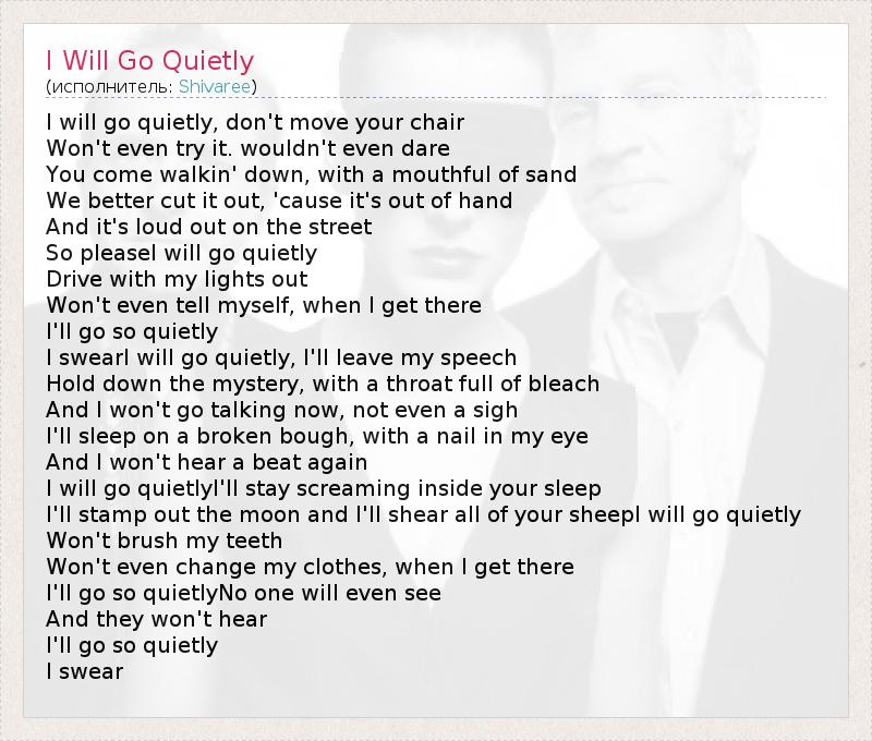 А как ты думаешь, о чем песня "I Will Go Quietly" ?