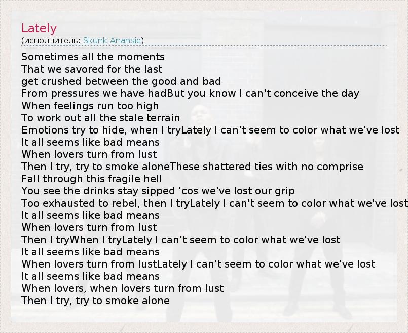 Это интересно:Название лондонского квартета "Skunk Anansie" было взято из сказочной мифологии островов Вест-Индии. Дебора Энни Дайер, родилась 3 сентября 1967 года в районе Лондона Брикстон, где проживают афроангличане. Подростком она бредила идеями свободы, а ее кумиром была лидер американских борцов за свободу Анжела Дэвис. Позже она окончила политех в Миддлсборо.В его недрах и берет начало ее музыкальная... продолжение