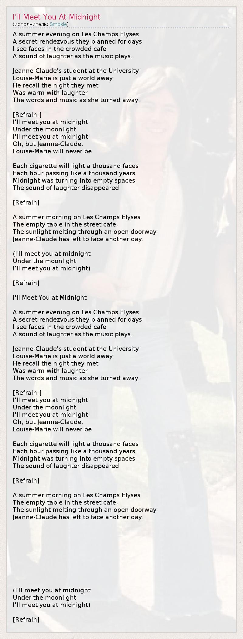 А как ты думаешь, о чем песня "I'll Meet You At Midnight" ?
