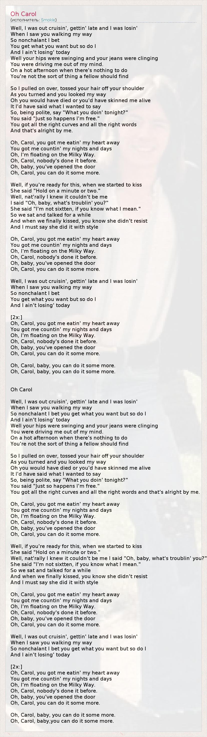 О, Кэрол* (перевод Денисова Анна из Санкт-Петербурга)