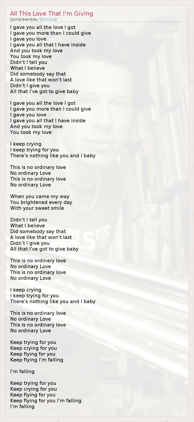 ГлавнаяИсполнителиSmooveAll This Love That I'm Giving
