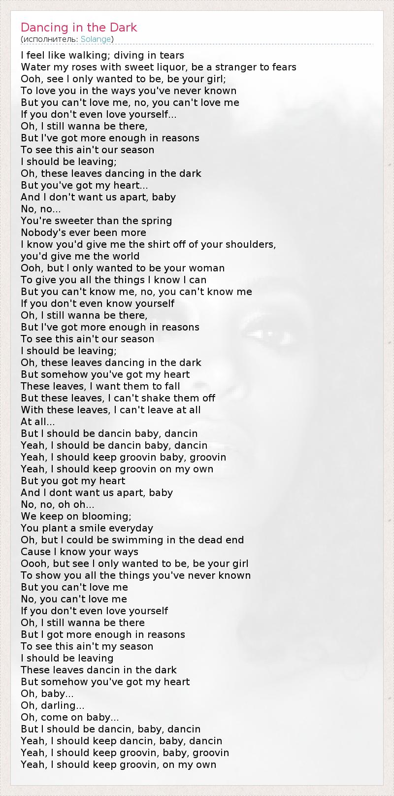А как ты думаешь, о чем песня "Dancing in the Dark" ?