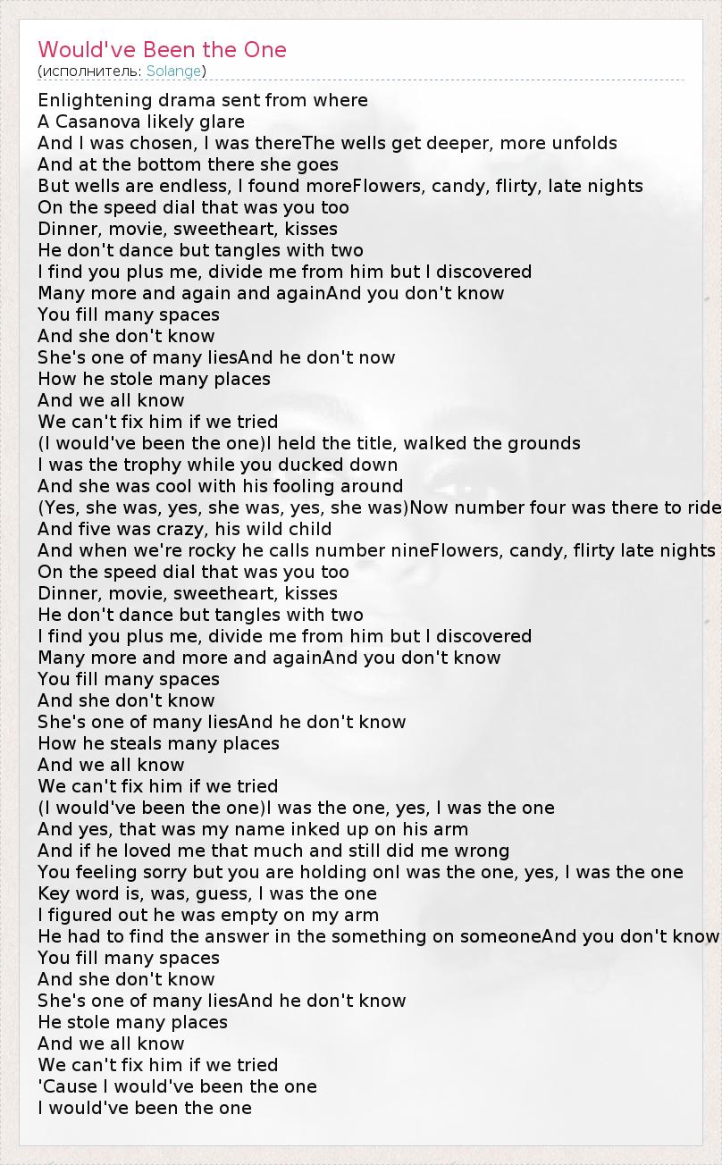 ГлавнаяИсполнителиSolangeWould've Been the One