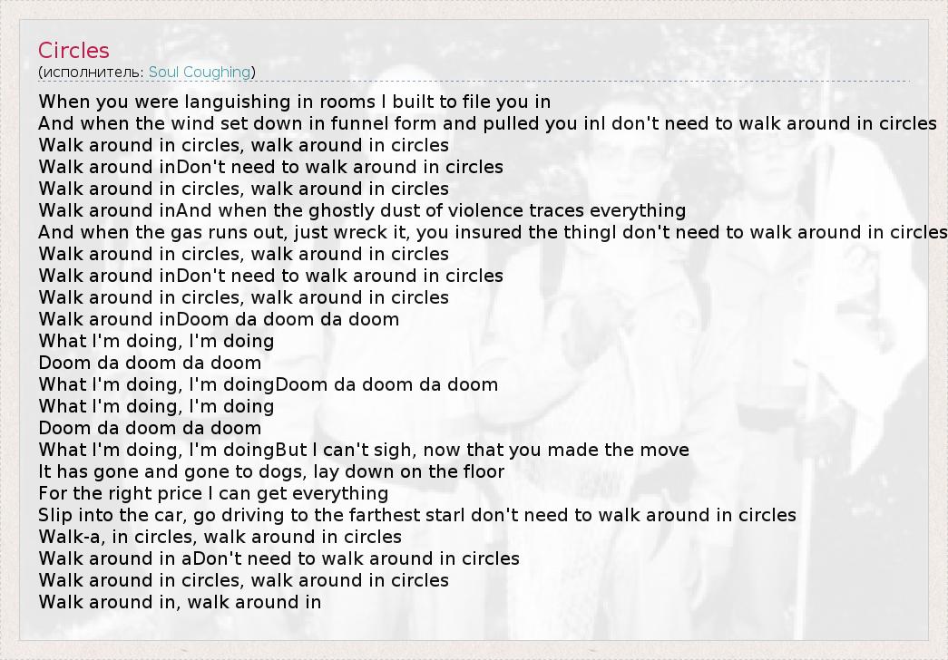 And when the wind set down in funnel form and pulled you inI don't need to walk around in circles