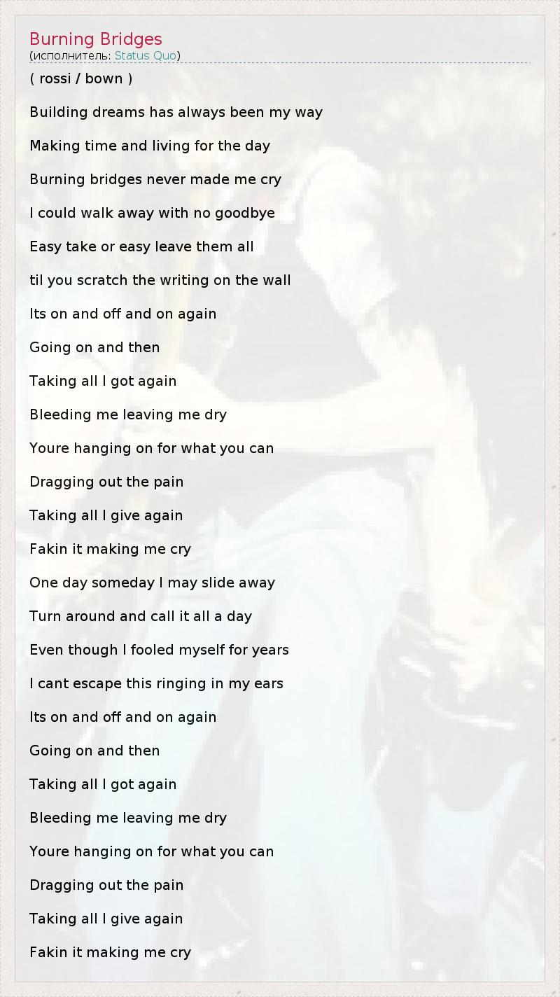 А как ты думаешь, о чем песня "Burning Bridges" ?